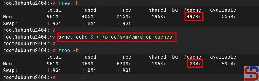 And the cache memory on your Linux server will be deleted as shown below: