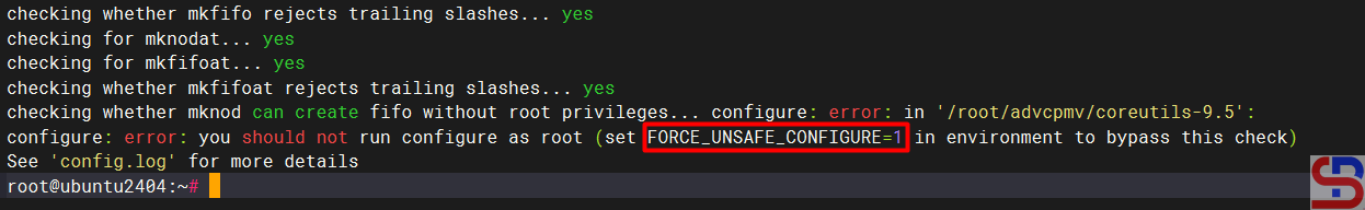 export FORCE_UNSAFE_CONFIGURE=1