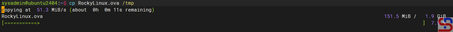 The image below shows no progress bar when you copy a file in Linux CLI:
