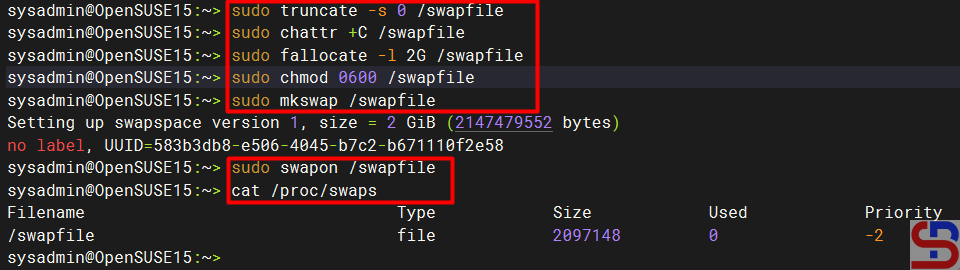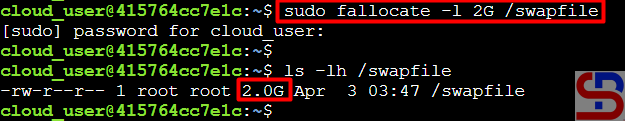 Therefore, so that my server can have a 2GB swap space, I have to create a swap file by running the commands below: