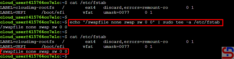 From the picture above, you can see that the server has a swap space. After that, you have to add the below script to /etc/fstab so that the swap space remains when you reboot the server by running the script below: