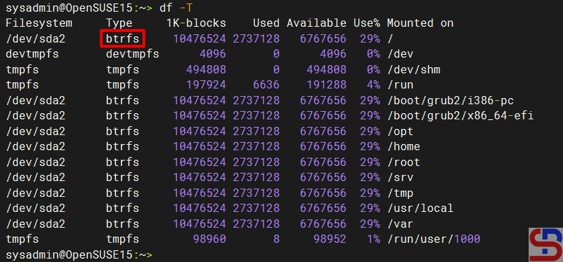 I have an openSUSE server and use the btrfs filesystem as shown in the image below: