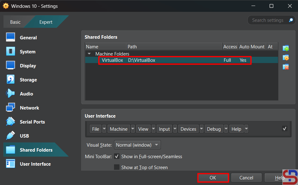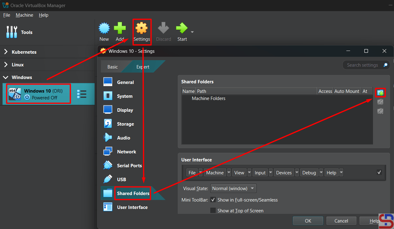 I use VirtualBox version 7.1.4 in this article and below are the steps so that you can share a folder between a Windows host and a Windows guest in VirtualBox: