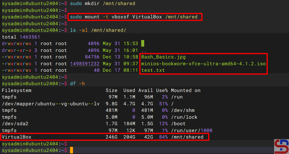sudo mount -t vboxsf VirtualBox /mnt/shared