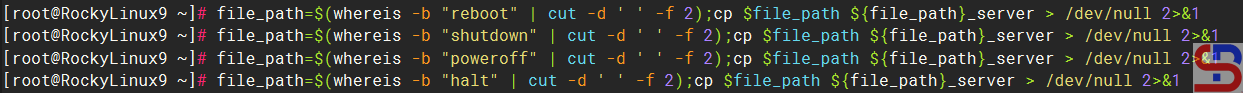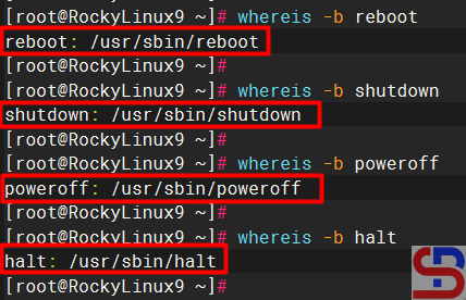 First, check where the reboot, shutdown, poweroff, and halt commands are located on the Linux server by running the command below: