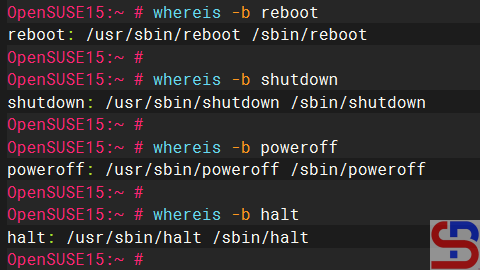 As far as I know, Linux distributions such as RockyLinux and Ubuntu only provide one binary file for each command for the reboot, shutdown, poweroff, or halt command, usually in the folder /usr /sbin. However, on certain distros, for example, the OpenSUSE distro, when you run the command above, the result will be as shown in the image below: