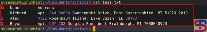 For example, you have a test.txt file that contains the following: