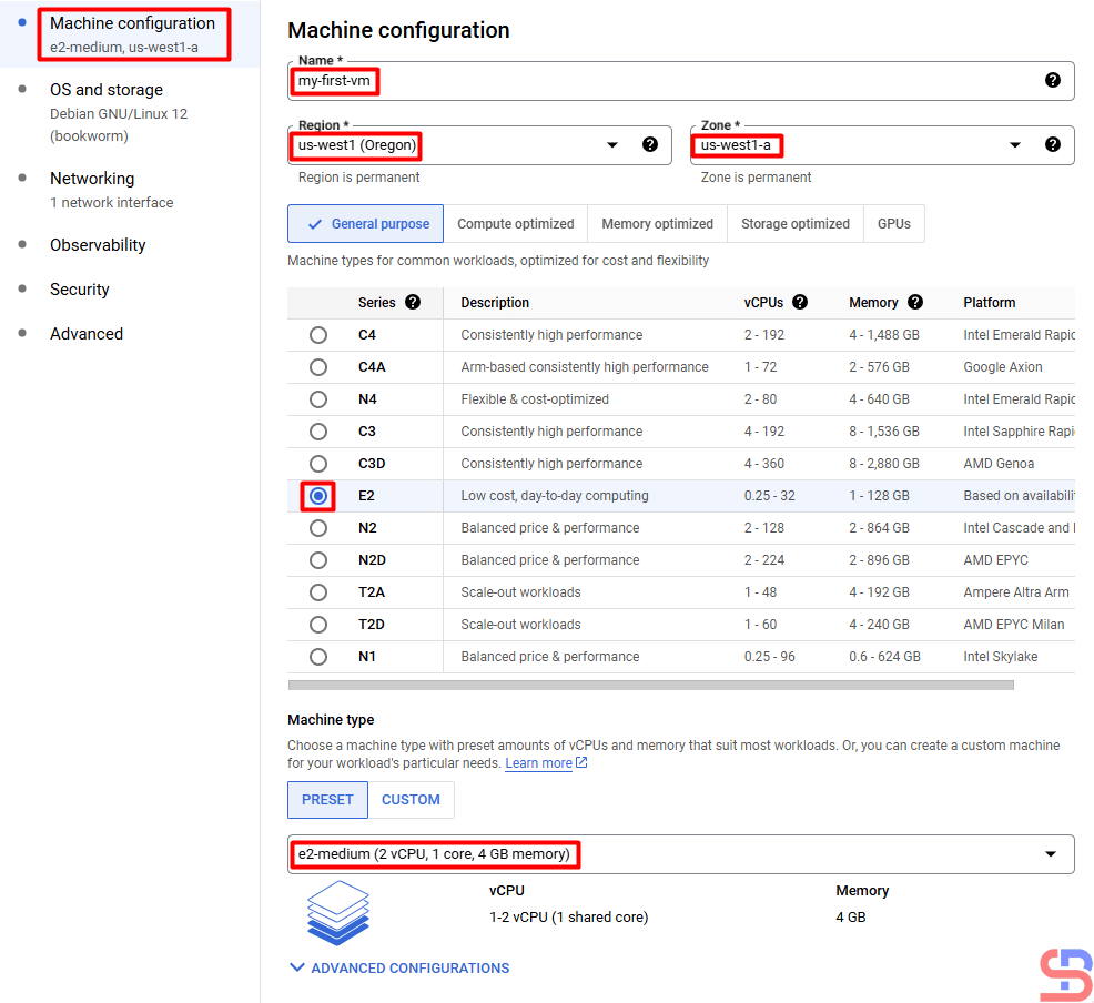 If you have a virtual machine at GCP, by default, the Linux system will only make one partition / only. If the partition is smaller, then you have to increase the hard disk server size