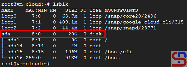Enter the VM, then we check the block devices using the command: